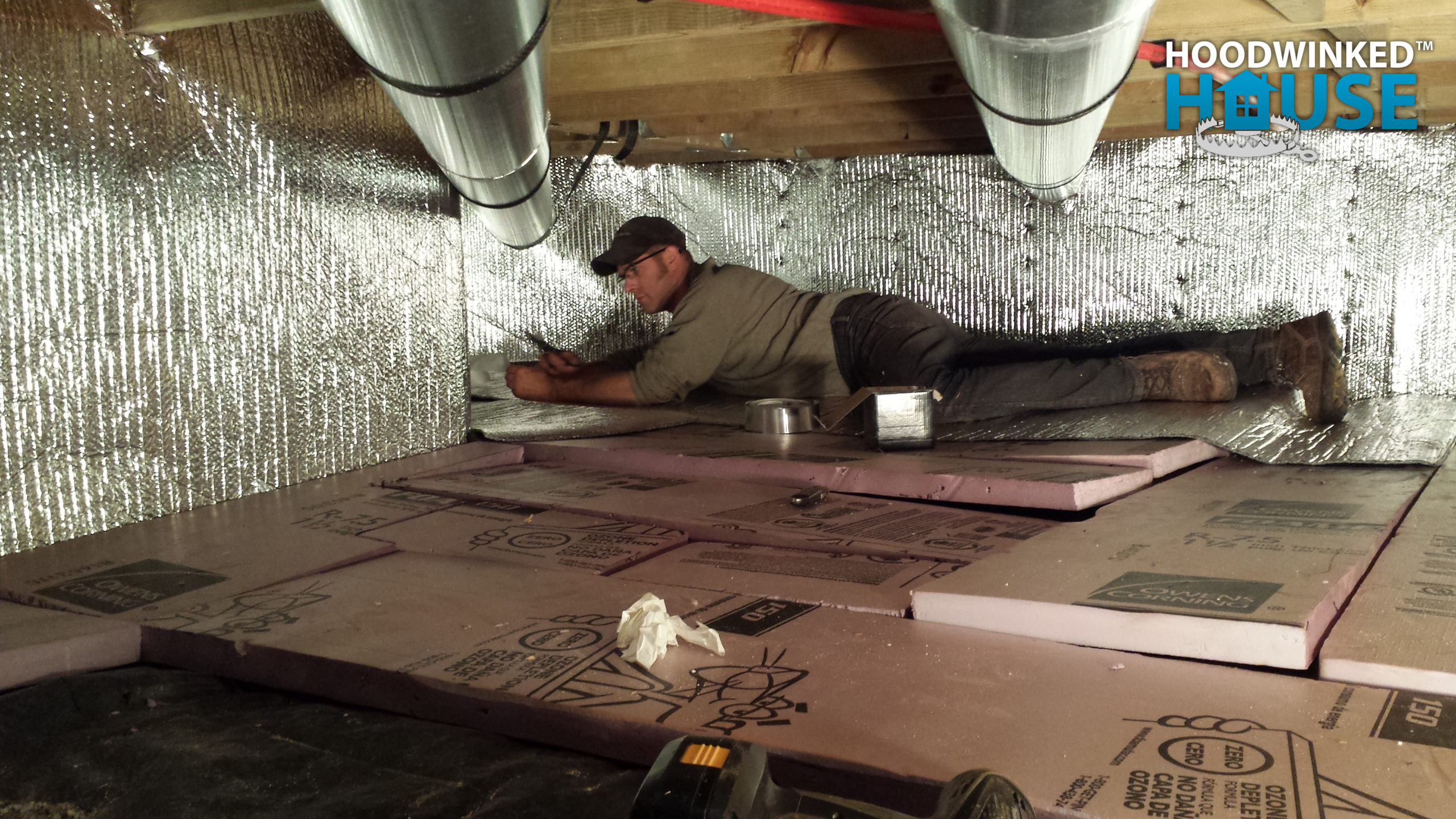 Crawlspace insulation finished April 18, 2022November 29, 2014 I continue adding reflective insulating wrap to the floor and walls of the crawlspace, closing each seam with aluminum HVAC tape. The finished crawlspace instantly improves the heat retention in the dining room.